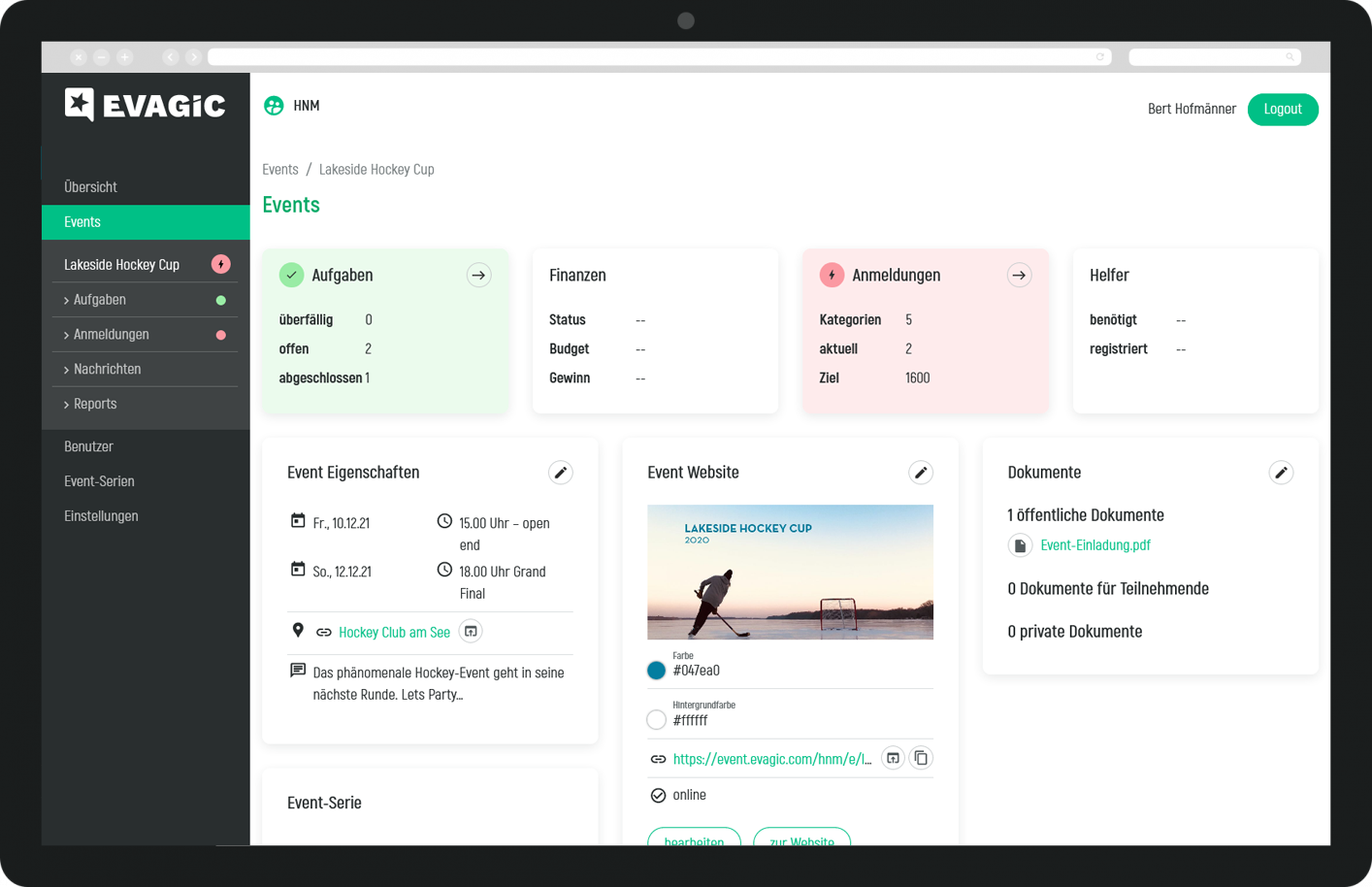 EVAGIC ist DAS Tool für deinen Verein, um Events zu organisieren. Es beinhaltet die Erstellung attraktiver Event-Websites, die Verwaltung von Anmeldungen (Teilnehmenden-Management), die Definition von Rollen und Aufgaben sowie eine Budget- und Buchungsfunktion zur Erleichterung deiner Organisation.